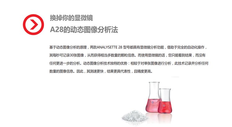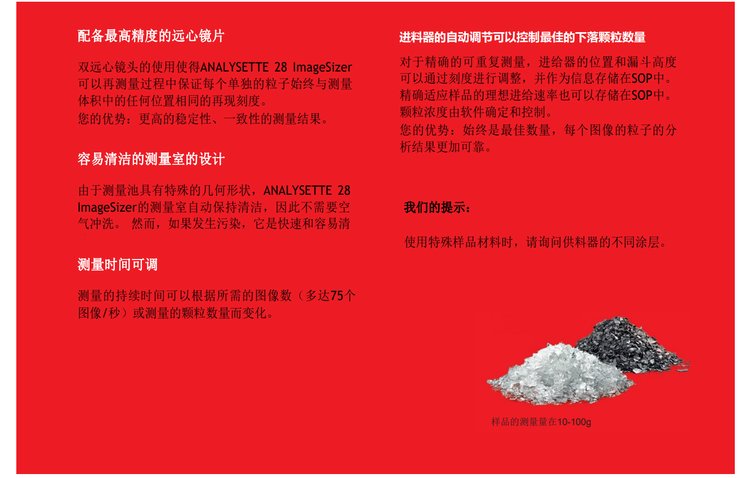 测量速度 | 最高可达75快速图像分析用于颗粒粒型及粒度分析张/sec | ||