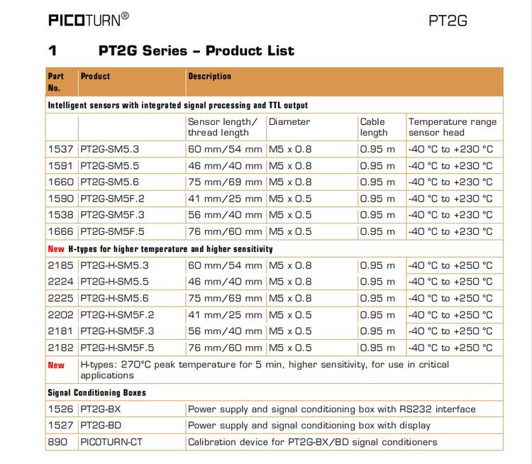 ACAM PT2G-SM5.6涡轮增压器转速传感器产品参数:1660 PT2G-SM5.6 75 mm/69 mm M5 x 0.8 0.95 m -40 °C to 230 °C