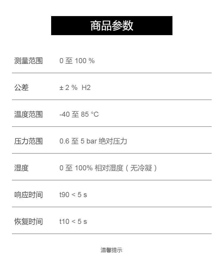 用于PEM燃料电池的阳极回路中,以检测氢气,氮气和水蒸气的三次混合物,或在惰性条件下测定氢气浓度;也可用作空气或贫氧空气条件下的氢气浓度测量。具有温度、压力和湿度补偿信号评估,并通过 Modbus RS485/RTU 输出。