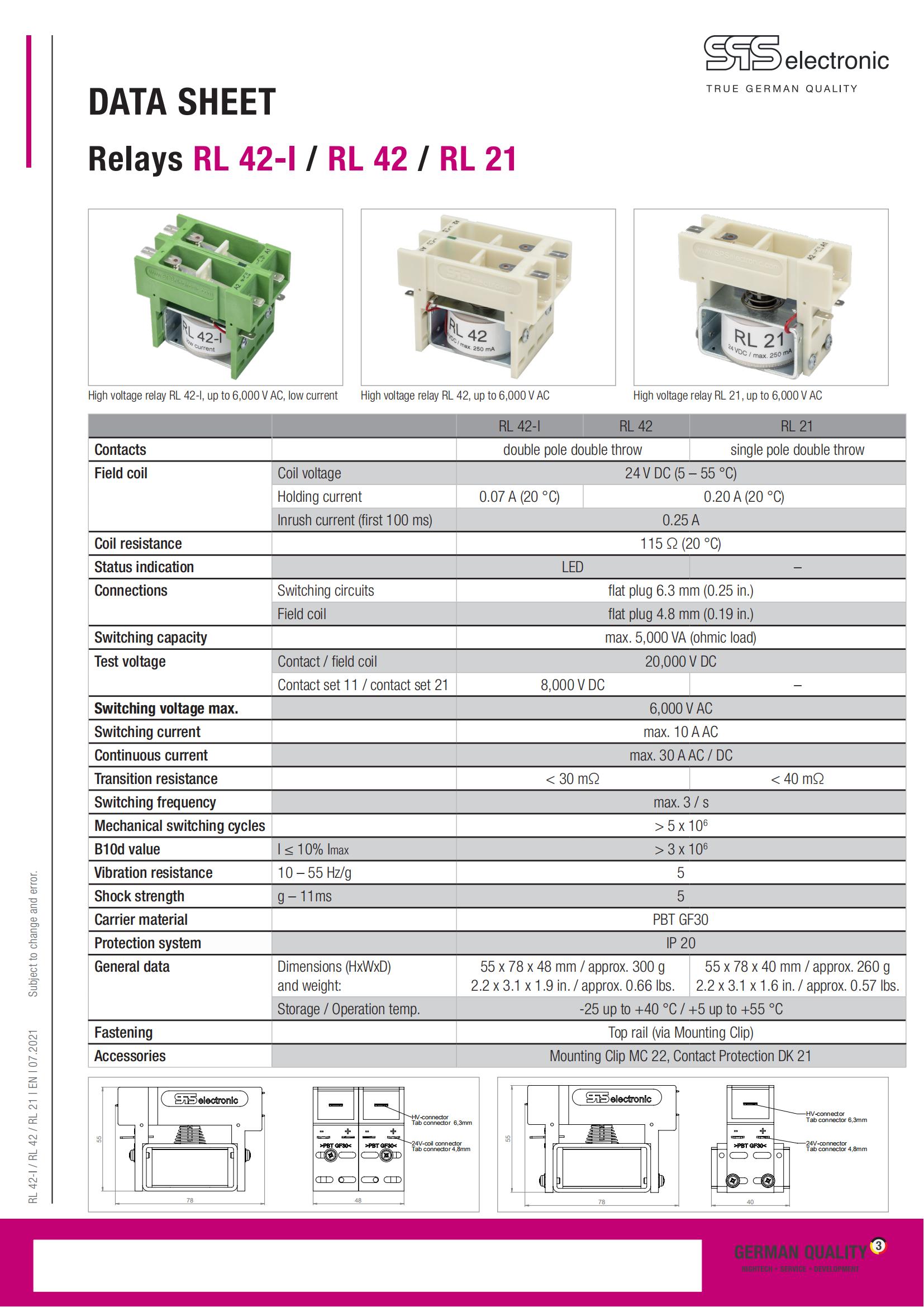 继电器:RL 42-l、RL 42、RL 21、RL 42-h、RL 38-h
