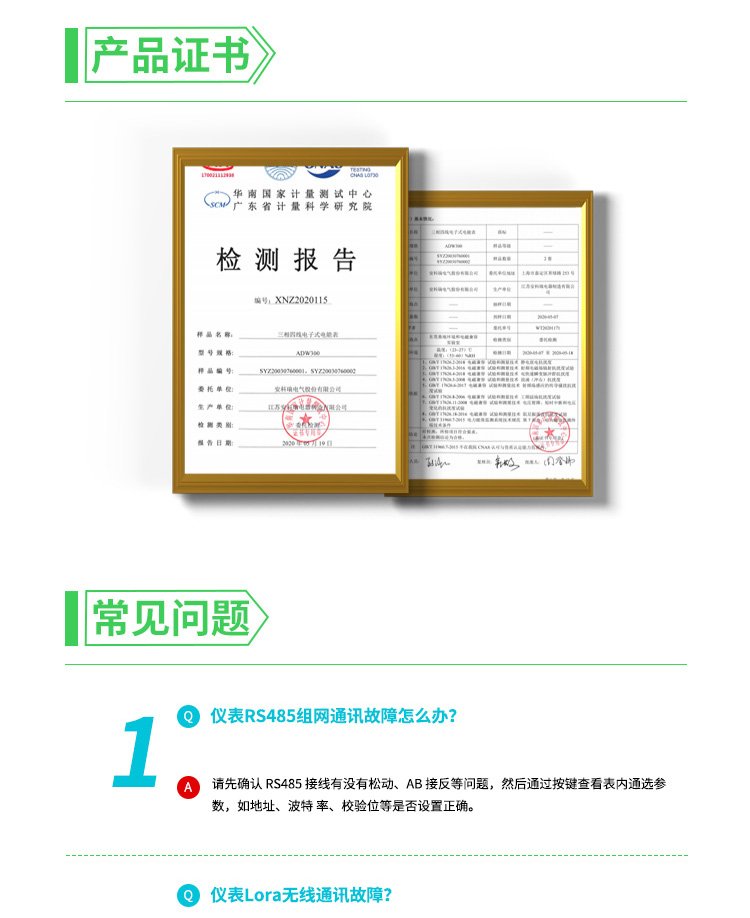 安科瑞无线计量电表ADW300/CK三相功率带通讯 4DI/2DO 品牌 | 安科瑞 | ||