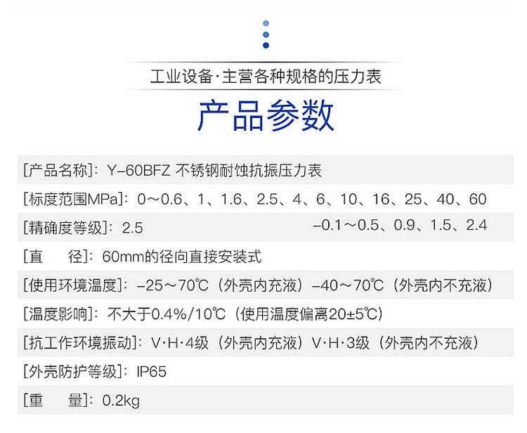 上仪自动化仪表四厂不锈钢真空压力表Y-100BF-0.1 0.15MPAM20*1.5