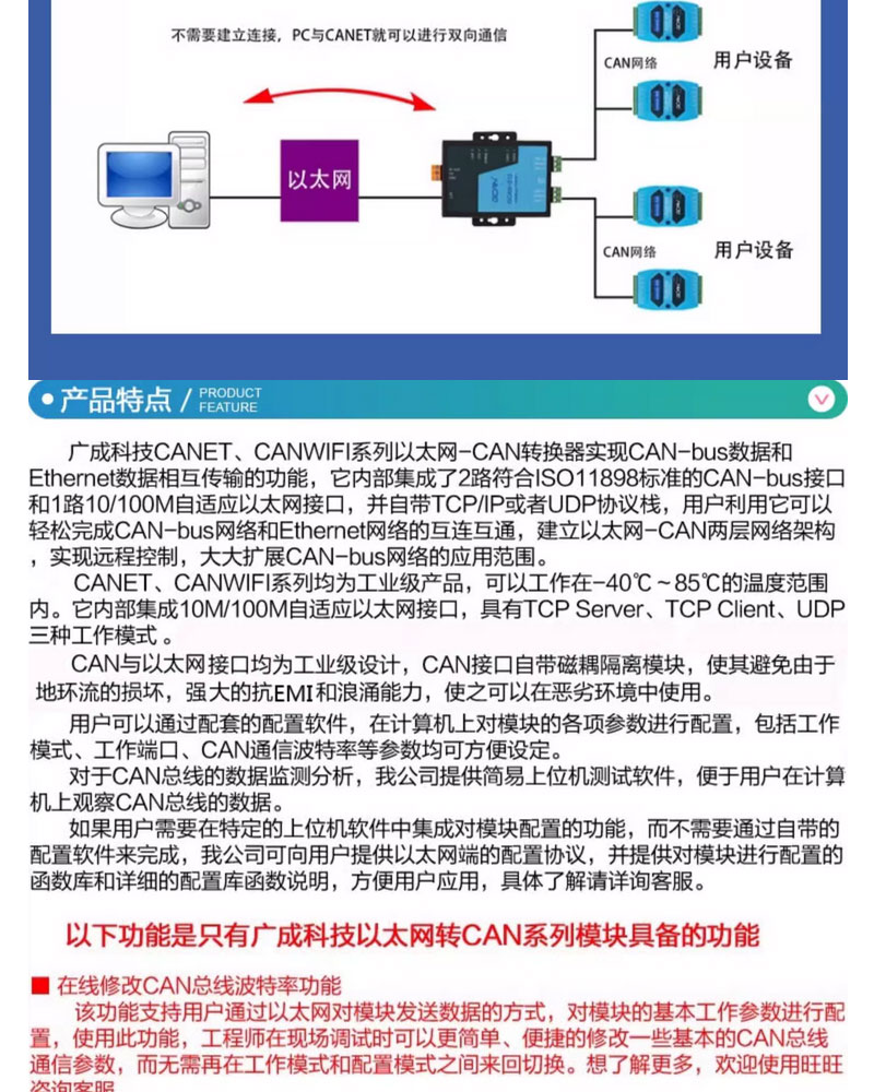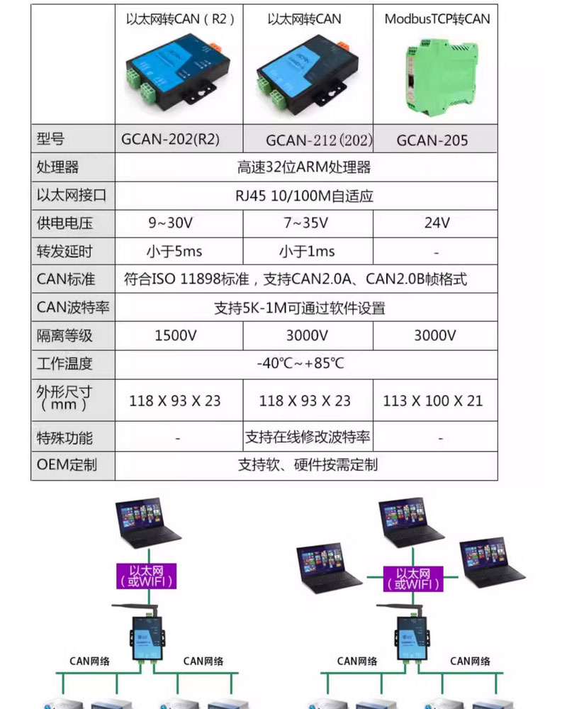 广成GCAN-212-B以太网转CAN收发器 支持TCP/UDP通讯 兼容SOCKET 国产 型号 | GCAN-212-B | ||