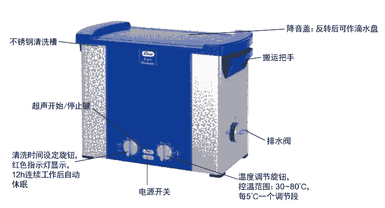 ● 37/80KHz双频率可调,分别用于不同清洗目的:常规清洗和精密清洗;