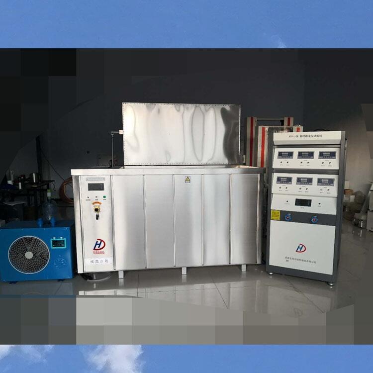 本试验机由压力控制系统、压力源、恒温介质箱、夹具和计算机五部分组成。