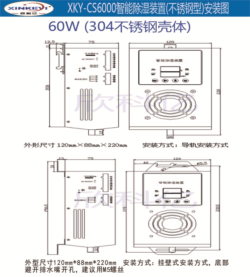 XKY-CS6000智能除湿装置(不锈钢型)主要技术参数: