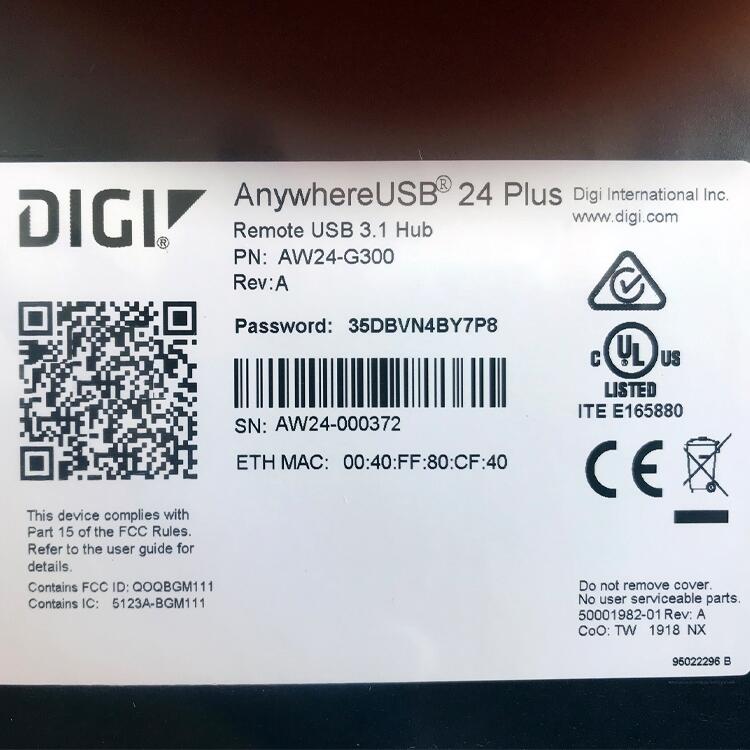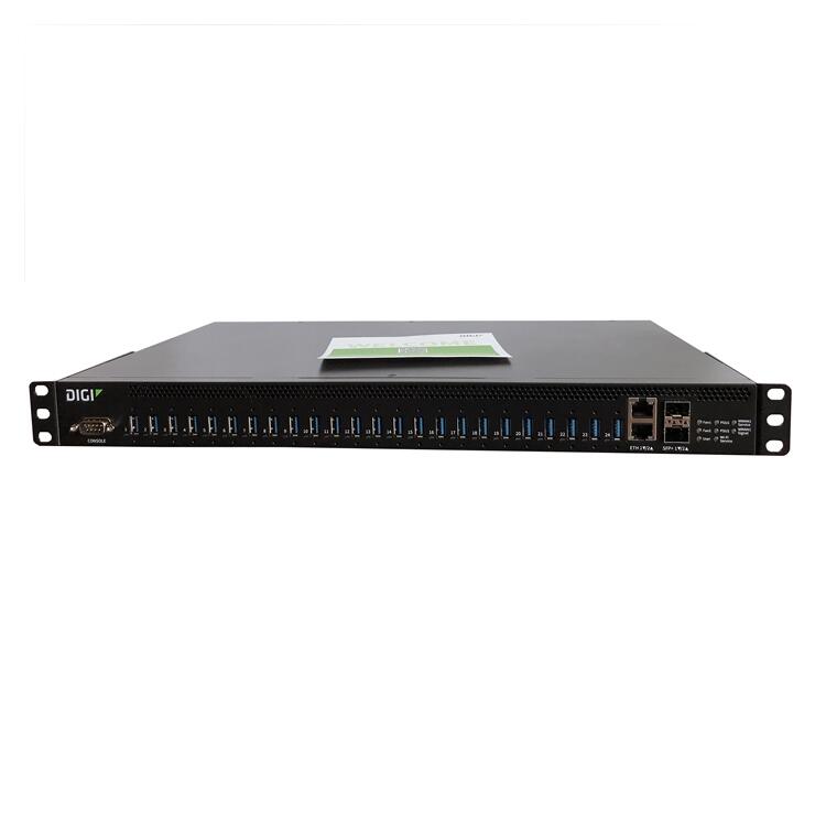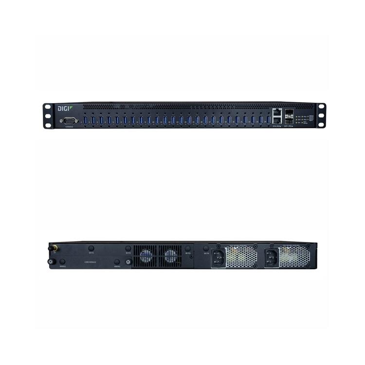 Digi AnywhereUSB 24 Plus - 24端口USB over IP远程USB 3.1集线器,带双10 M/100 M/1G/10 G以太网,双100-240 VAC电源,支持双SFP+模块和可选蜂窝Digi CORE模块