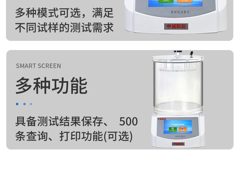 ZC-02P型密封试验仪适用于食品、制药、日化、电子等行业软包装件的密封试验。通过试验可以有效地比较和评价软包装件的密封工艺及密 封性能,为确定相关的技术指标提供科学依据。也可进行经跌落、耐压试验后的试件的密封性能测试。相比传统设计真正实现了智能化测试:多试验参数预置可大幅提高检测效率;压力递增检测模式可迅速得出试样泄漏参数,亦可观察试样在阶梯压力环境和不同保压时间下的蠕变和破 裂及泄漏状况。可打印参数及试验结果(打印机选配)
