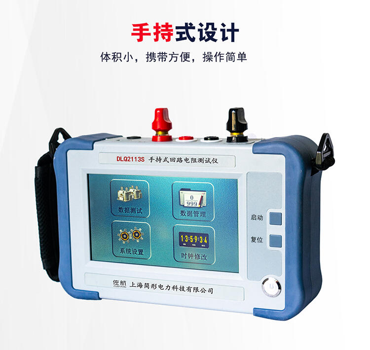 佐航DLQ2113S手持式回路电阻测试仪是公司根据IEC标准及中华人民共和国电力执行标准DL/T845.4- 2004有关规定,发挥自身技术优势,精心研制的高精度、数字化开关检测仪器。该仪器采用高频大功率恒流开关电源技术,可测得微欧姆级接触电阻。广泛适用于各种开关及电器的接触电阻、回路电阻及电缆电线、焊缝接触电阻的测量,仪器测量数据准确,性能稳定,满足电力、供电部门现场高压开关维修和高压开关厂回路电阻测试的要求。输出电流和测量电阻同时输出在七寸高亮度触摸彩色液晶上,测量结果即可电压输出也可U盘存储,掉电存储可满足随时数据查询。