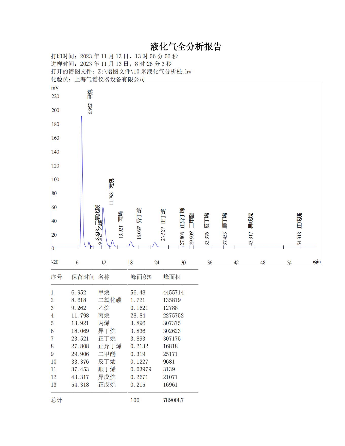 5、可将液化气甲烷、乙烷、丙烷、异丁烷、二甲醚、正丁烷、异戊烷、正戊烷等各组分含量分析出来。