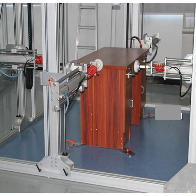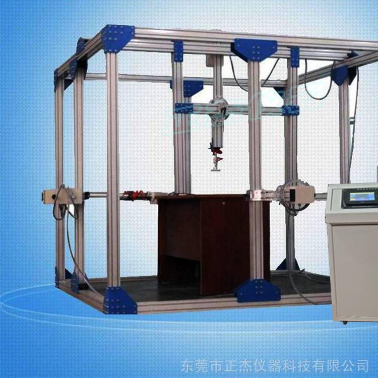 可进行水平方向静载荷及水平方向耐久性测试仪。柜桌床综合测试仪采用水平方向的四支气缸对试样四边以规定的力值进行反复循环加载。一定次数后,检查试样结构,功能等方面是否存在损坏,籍此了解产品的性能及缺陷。