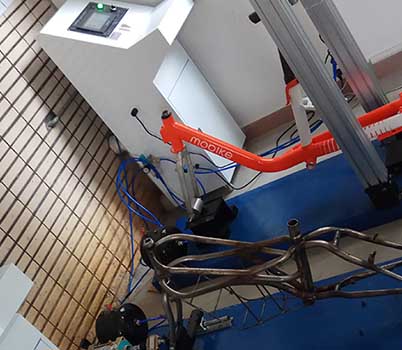 1、 试验时将车架按照标准规定的方法固定在试验机上,假示前叉的位置可以通过手动调节来适应车架的大小;