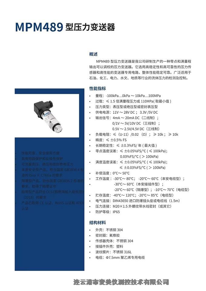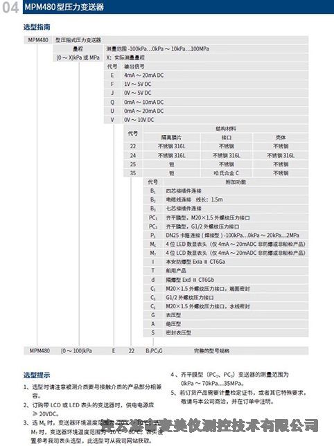 麦克MPM480压力变送器4~20mA进口扩散硅压力传感器
