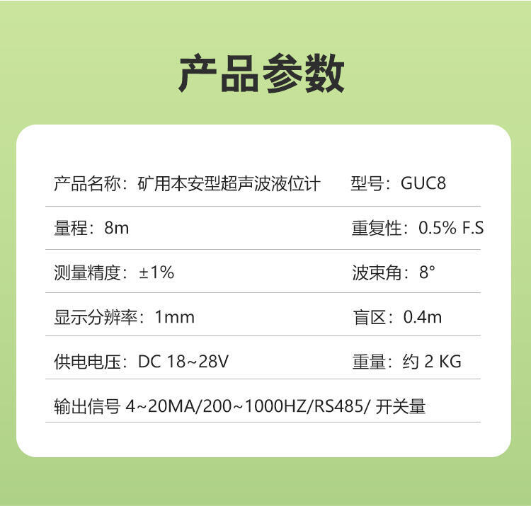 济宁华瑞自动化技术有限公司作为矿用仪器设备领域的领先企业,推出的GUC8超声波水位传感器,具备本质安全(本安型)设计原则,专门针对井下恶劣环境下的液位测量需求。作为一款高性能的超声波传感器,GUC8能够有效满足煤矿的安全生产要求。