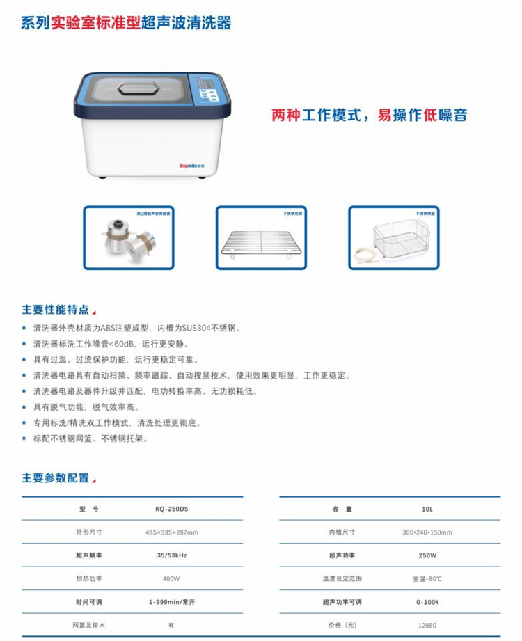 舒美实验室台式超声波清洗器KQ-400DE 15L功率可调:40-100%