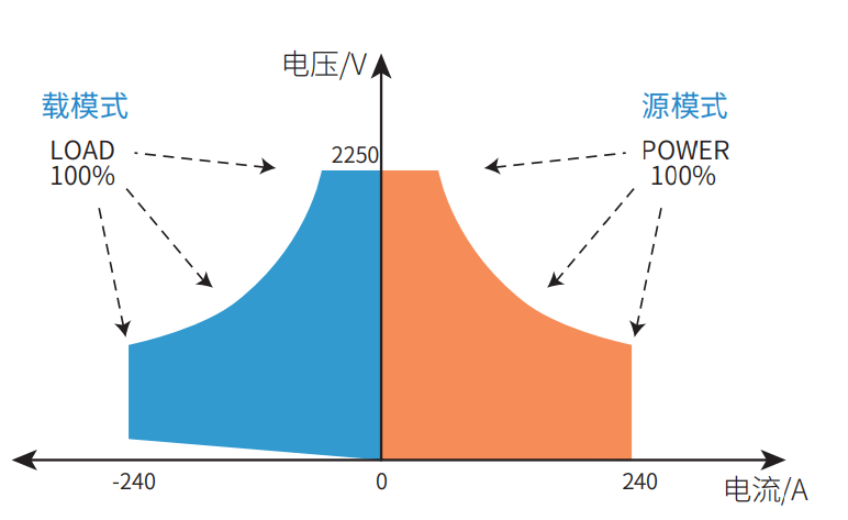 N35500集电源和回馈式负载功能特性于一体。相较于传统电源和负载实现的正负电流切换方案,N35500双向电源可以在源和载模式下高速转换,实现输出和吸收电流之间快速连续的无缝切换,有效避免电压或电流过冲。