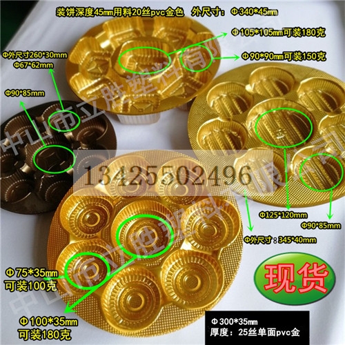 生产设备,十几年的生产从事经绘验,专业为食品,月饼托 圆形,月饼托方形,月饼托盒,月饼托盘等业务,吸塑是一种塑料加工工艺,主要原理是将平展的塑料硬片材加热变软后,采用真空吸附于模具表面,冷却后成型的,吸塑产品应用广泛,其主要用于电、电器行业,食品行业,五金工具,化妆品行业玩具行业、日用品行业,医药、保健品,汽车,文具、文体用品等等行业,今天说的是月饼包装(吸塑内衬内托),采用的是pp食品级材料、防潮效果好、防静电内托、做工精美、它柔韧、质轻、密度、设计新颖、干净卫生、可以直接接触食品、无污染食品级内托、也成为当前的绿色包装。