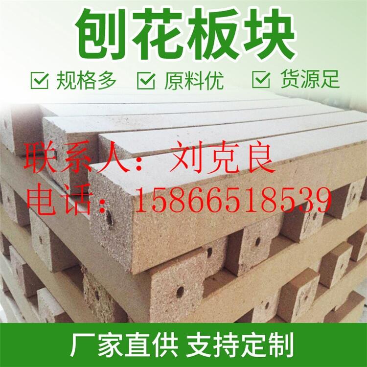 刨花板块的特点:密度580-620KG/M3,价格便宜,使用方便,能够替代实木木墩,使用率高,从而减少了原材料的浪费!使用胶水为环保胶水,E2胶水。因为该产品经过了高温高压,所以出口的时候是不需要做熏蒸的,被称为:免熏蒸材。
