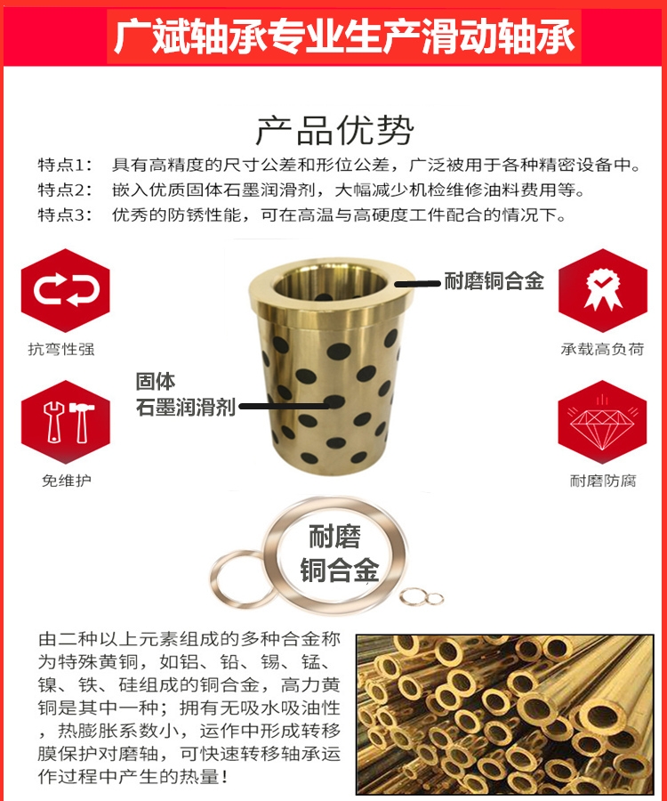 自润滑镶石墨模具配件导柱导套铜套固体润滑无油衬套