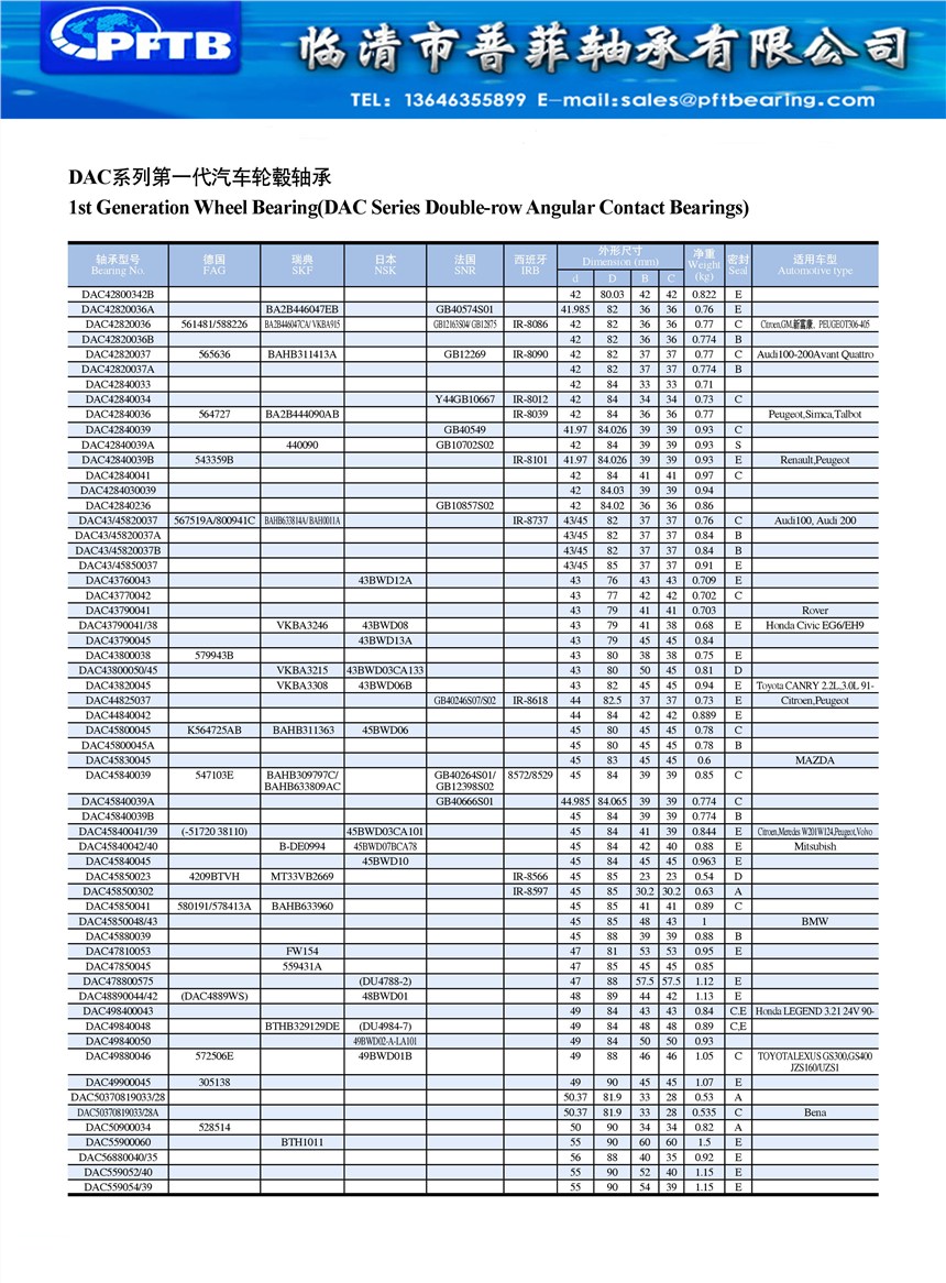 DAC3060037 | 52981AB | BA2B633313CA | 30BWD07 | 30 | 60.3 | 37 | 37 | 0.42 | C | Fiat131-147,Ladalancia,seat,Volvo |