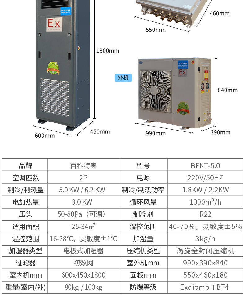 百科特奥2P防爆恒温恒湿空调机BFKT-5.0|2匹恒温恒湿机厂家订制