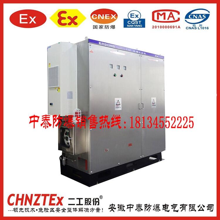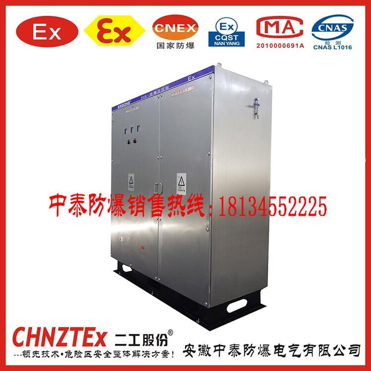 采用介质隔离点燃源的防爆措施。即:把用户所用的电器元件安装在一个充满正压洁净气体的柜体内,使外部环境中易燃易爆的混合性气体无法接触到电器元件在正常工作时所产生的电火花或危险温度,从而达到电器防爆的目的。