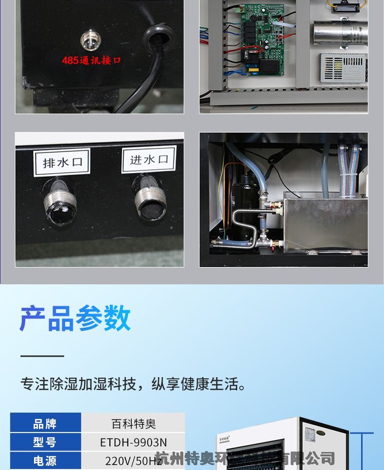 性能说明:自动控湿模式,加湿模式,除湿模式,净化模式 可以任意选择,带漏水报警和支持485