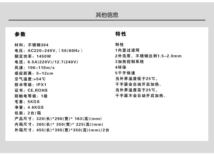 DH2800迪奥不锈钢高速喷气式干手器烘手器