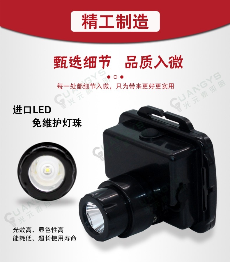 7:使用方便:人性化设计,可直接头戴或安装在头Kui上使用,头带柔软、弹性好,长短可调,照明角度可随意调节;