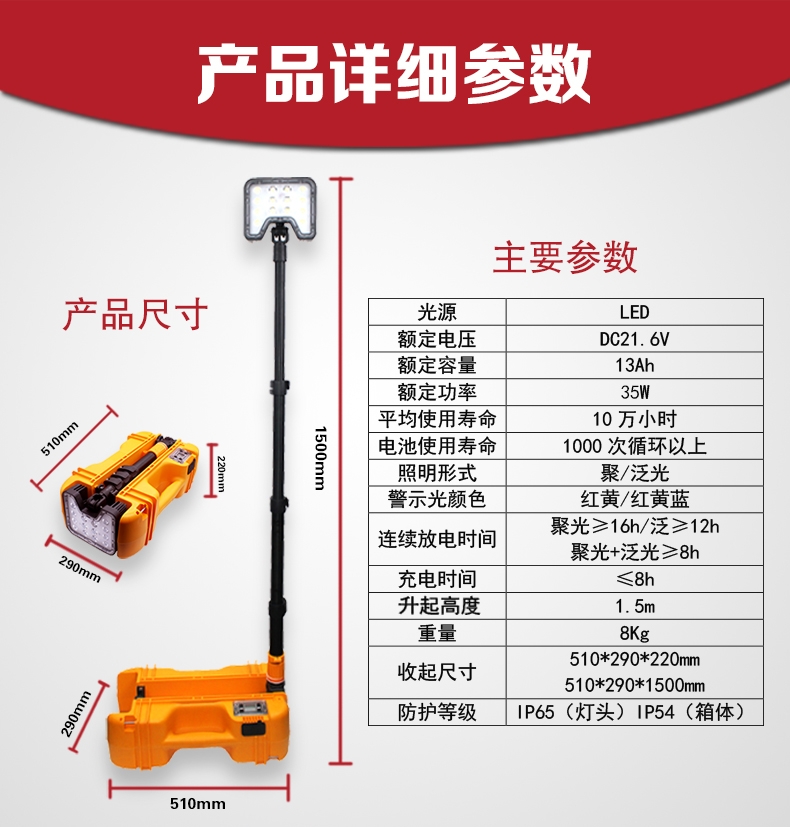 ◆轻便耐用:灯具体积小、重量轻,可以实现手提、背行两种携带方式。灯具也可以安装铁轨轮,方便用户在铁路单轨上移动;