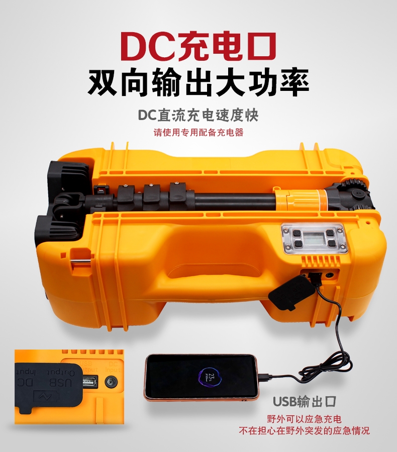◆功能多样:灯具功能多样,更具人性化。集聚光/泛光照明、电量显示、无极调光、信号警示等功能,满足用户不同环境下使用的需求采用标准USB充电接口,可为大部分手机等数码产品充电,解决用户在户外作业时手机或其他数码产品电量用尽无法使用的烦恼;