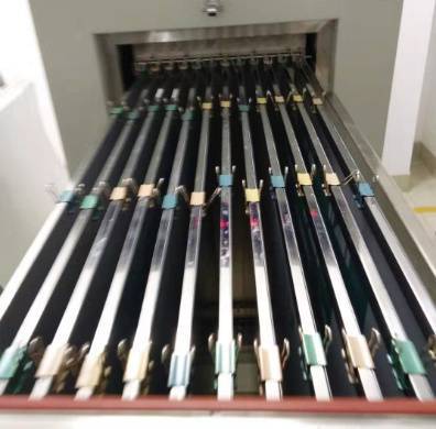热风量循环稳定,版面烘烤温度分布均匀,定时开关机装置,全封闭机箱设计,防止热气流失;精巧的夹板装置,方便版材取放;烘烤完毕自动报警,温度控制准确,内胆使用不锈钢及循环通道,整个烤版空间上下、左右、中间温差合理,多层隔热优良系统,做到烤版均匀不变形。