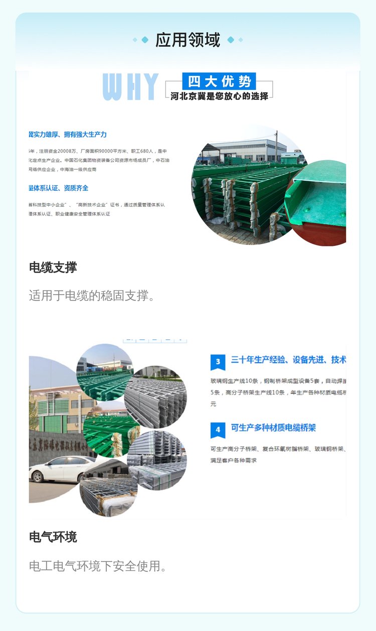 优越性能 | 大跨距走线,防腐耐用 | ||