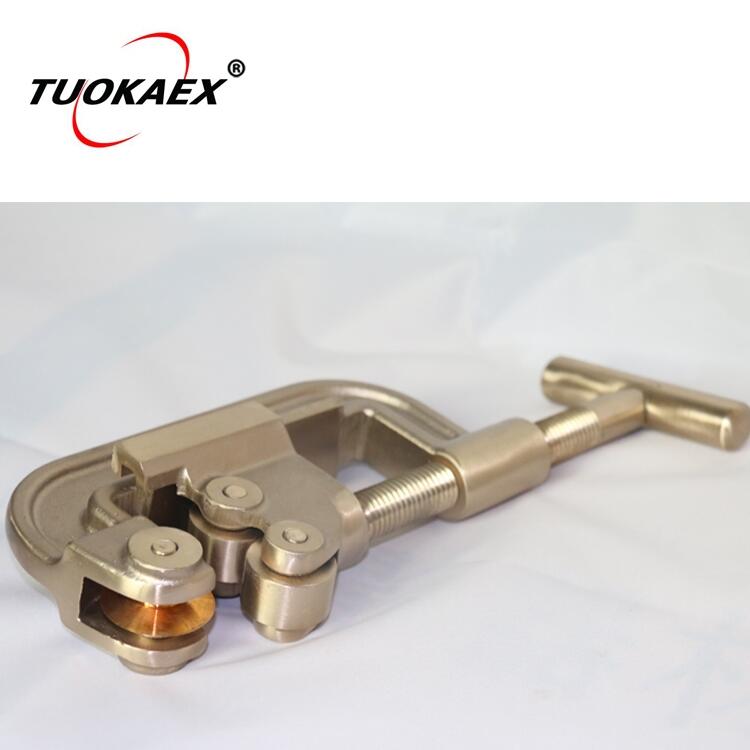 材质:铝青铜、铍青铜 铝青铜材质,工作面硬度HRC25°以上,抗拉强不低于δ b 75-85kgf/mm2属国家ⅡB级产品,在浓度7.8%的乙烯气体中作业不引爆气体; 铍青铜材质,工作面硬度HRC35°以上,抗拉强度δ b>105-120kgf/mm2,属国家ⅡC级产品,在浓度21%的氢气中作业不引爆气体;铍铜合金防爆工具还具备特殊的防磁功能,在有磁场的工作环境中能够正常使用。 以上两种材质防爆工具能有效的防止工具与工作物相互摩擦、撞击时产生的可燃性爆炸,确保国家财产和人身安全! 适用场所:石油、化工、矿山、防恐怖、防磁场、煤矿、采气、油气管道、发电、冶金、军工、航空、储运、制药、制气、塑料、化纤、皮革、烟火、爆竹等