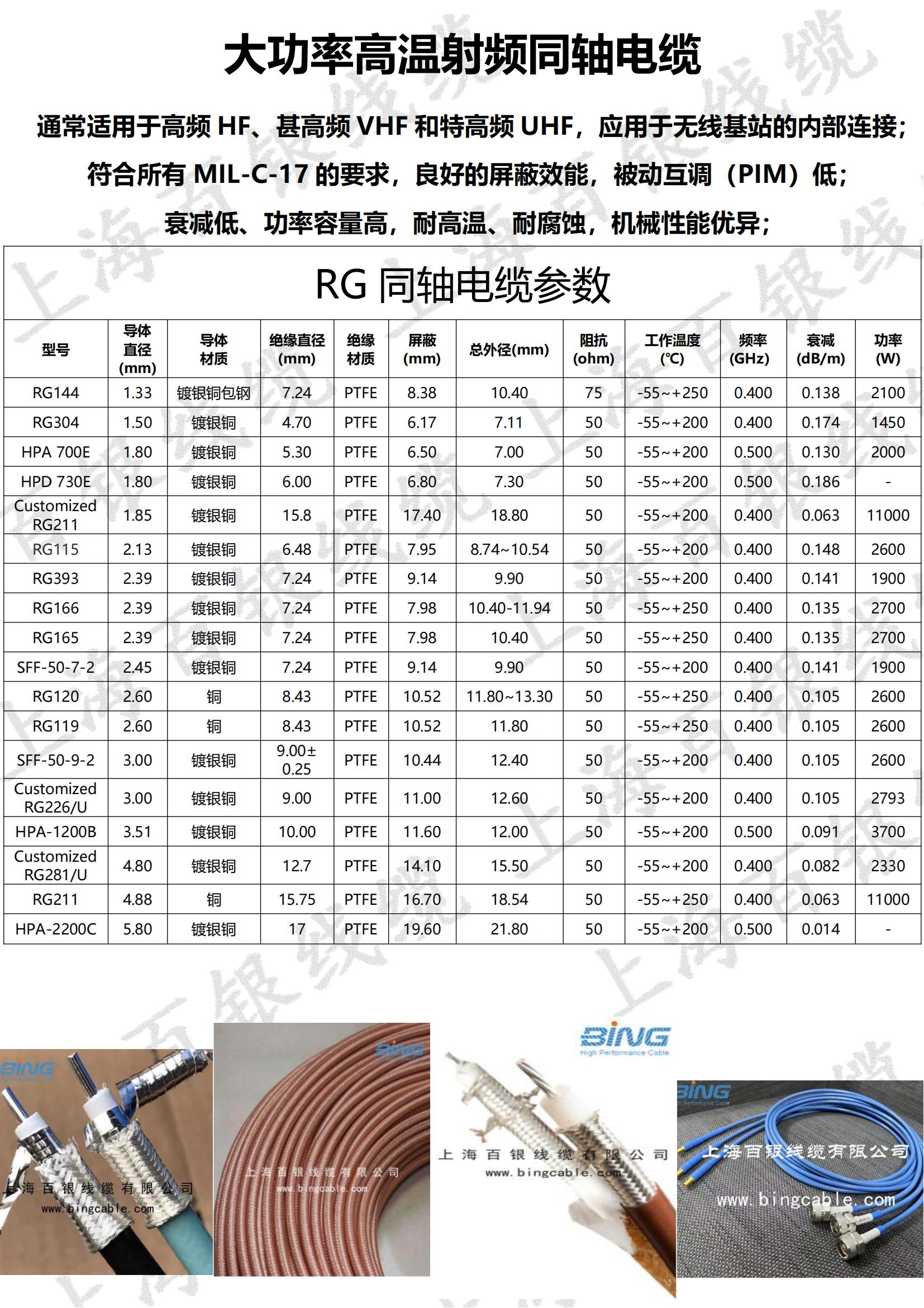 1.内导: 镀银铜线/镀银铜包钢
