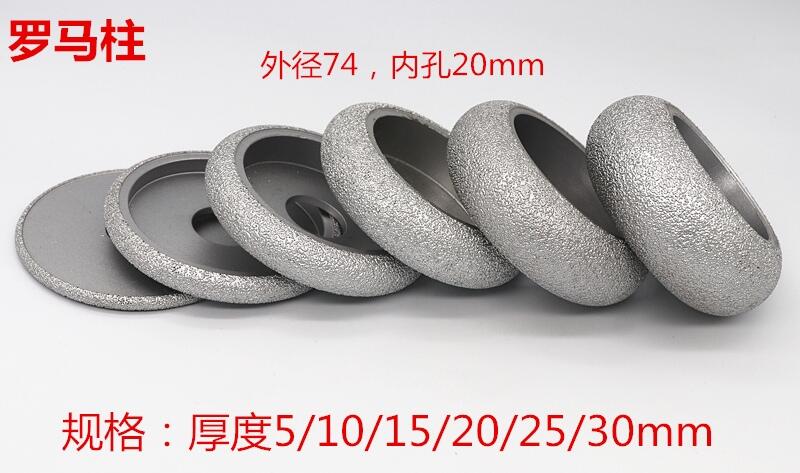 钎焊金刚石手工磨轮主要用于大理石、石英石、陶瓷、地砖等的打磨加工,可以用于开槽,半圆形加工,法国边加工,外径75mm,内孔20mm,可以用于角磨机上。