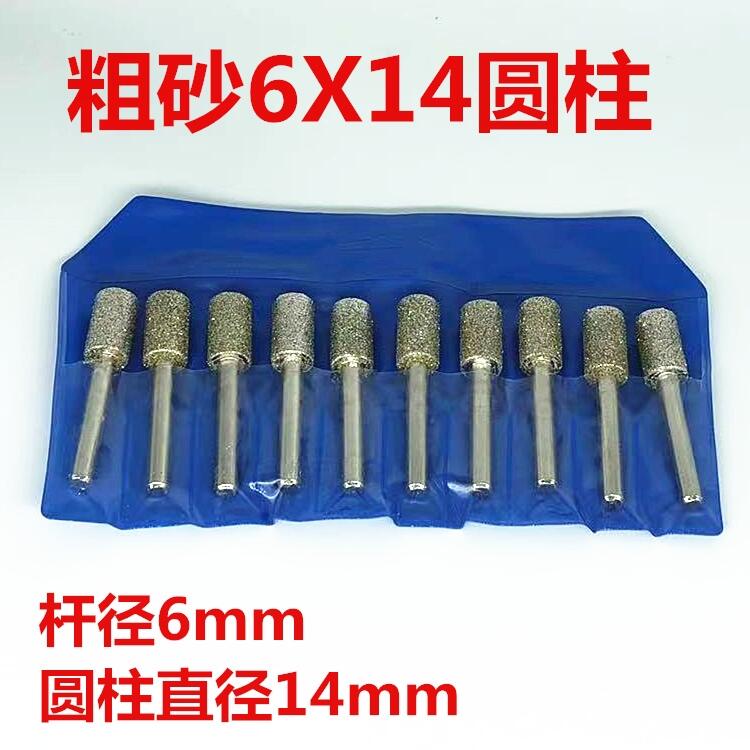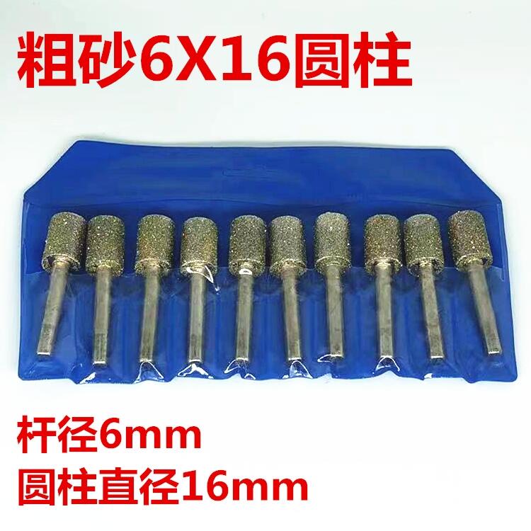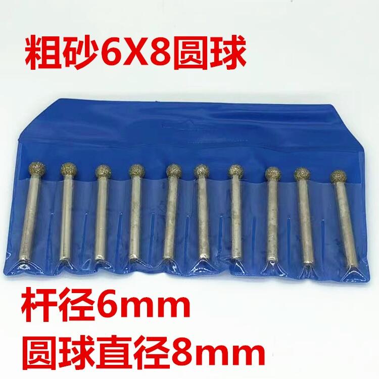 粗砂金刚石磨头适用范围:可装在电磨机,雕刻机,气动雕刻笔上使用。金刚石磨头选用的是高品位多菱角金刚石电镀而成,主要用于研磨加工,模具的加工和修复,石雕刻子,刻花,割线条,打磨,镂空,玉石雕刻,玻璃雕刻,清理铸,锻,焊件的毛边,毛刺,焊缝。齿磨加工。各种机械零件的倒角和沟槽的加工。清理管道,精加工机械零件的内孔和表面。