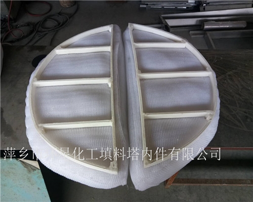 塑料丝网除沫器主要是由丝网、丝网格栅组成丝网块和固定丝网块的支承装置构成,丝网为各种材质的气液过滤网,气液过滤网是由非金属丝组成。气液过滤网的非金属丝由多股非金属纤维捻制而成,亦可为单股非金属丝。该丝网除沫器不但能滤除悬浮于气流中的较大液沫,而且能滤除较小和微小液沫,塑料丝网除沫器主要用于气液分离。亦可为空气过滤器用于气体分离。此外,塑料丝网还可作为仪表工业中各类仪表的缓冲器,以防止电波干扰的电子屏蔽器等。现已广泛用于化工、石油、硫酸、医药、轻工、冶金、机械、环保的工业生产。。
