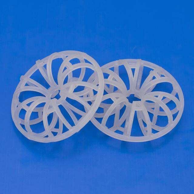 博胜花环填料也称梅花环填料,是由许多圆环结绕而成,具有聚丙烯填料的特点:空隙率大,压降和传质单元高度低;泛点高,汽液接触充分;比重小,传质效率高,多用于气体洗涤、净化塔中。