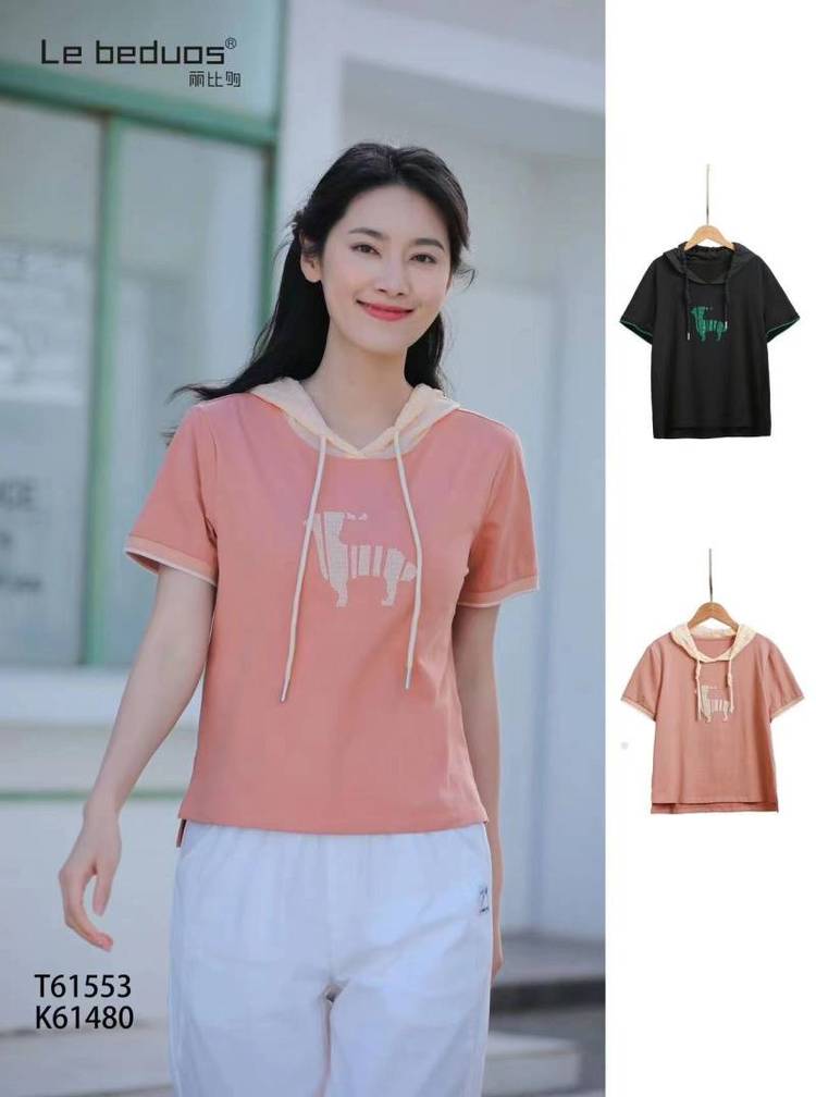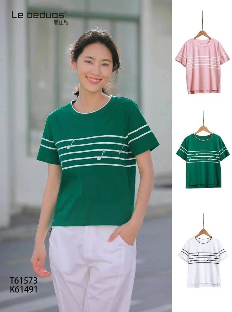 田园风夏季女装 丽比多T恤 短袖上衣 刺绣工艺圆领T恤 品牌女装尾货供应