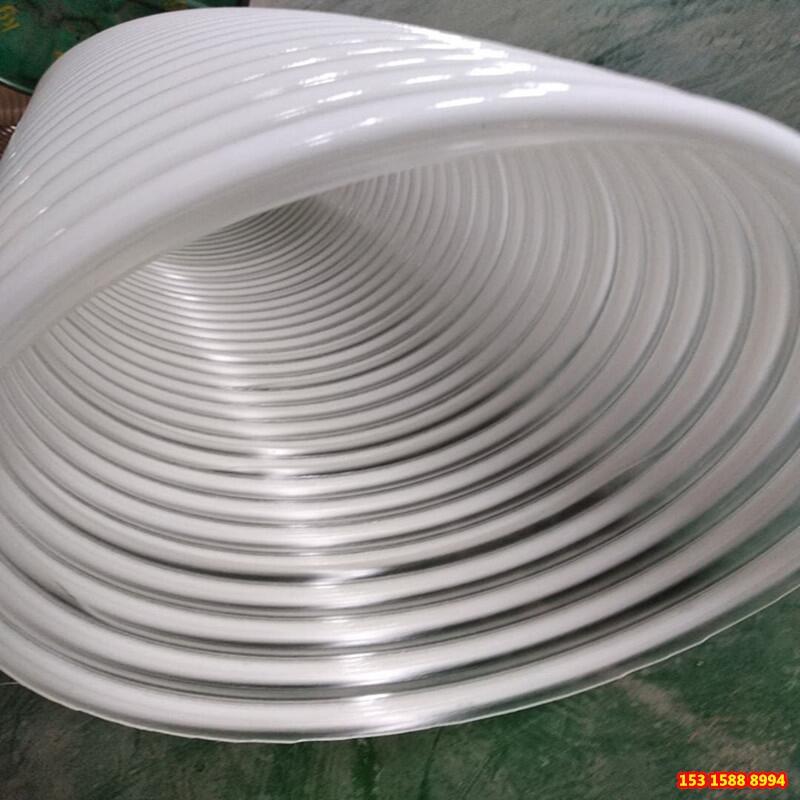 PU增强塑筋管,也叫波纹软管,螺旋软管等。采用德国进口耐磨PU材质和高强度塑料白筋加工而成,PU增强塑筋管内壁完全平滑,使得物料在软管内的流动更顺畅。PU增强塑筋管具有较强的耐磨特性,轻型,可任意弯曲,具有超高的强度及超长的使用寿命。塑筋吸尘管弯曲半径小、耐负压能力好,在真空状态下也能保持原形。
