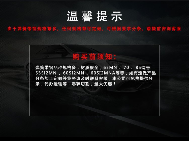 搜好货供应商山东九鸿物资有限公司供应现货65mn带钢冷轧 ?65锰弹簧钢带 ?规格0.1-3.0齐全可加工任意分条,为您提供详细的产品报价、参数、图片等商品信息,如需进一步了解现货65mn带钢冷轧 ?65锰弹簧钢带 ?规格0.1-3.0齐全可加工任意分条,请与厂家直接联系,请在联系时说明是在搜好货网看到这条商机的。