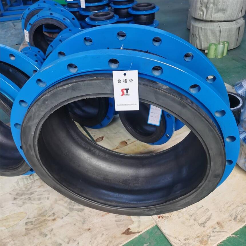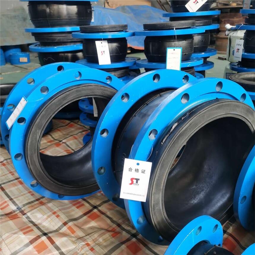 专业生产供应橡胶软接头俗称可曲挠橡胶接头,其产品广泛应用于水、电、化工、船泊系统,主要性能耐压高、弹性好(可轴向、横向角向位移)降噪音、质量轻、减震动、安装方便、使用灵活、便于拆换维修,同时具有耐酸、耐碱、耐油等特点。该产品在使用过程中耐天气自然变化可自动延伸。其结构材料采用浸胶尼龙帘子布内外面采用高强度耐老化极性橡胶材料。为防止该产品在长期使用中自然萎缩和减少老化破裂,采用网状钢丝进行多体保护。