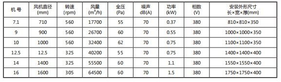 ZDBZ-I型风机外形尺寸表(单位:mm)