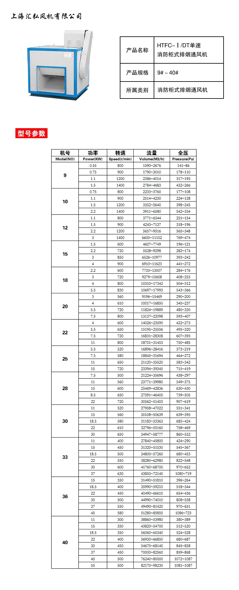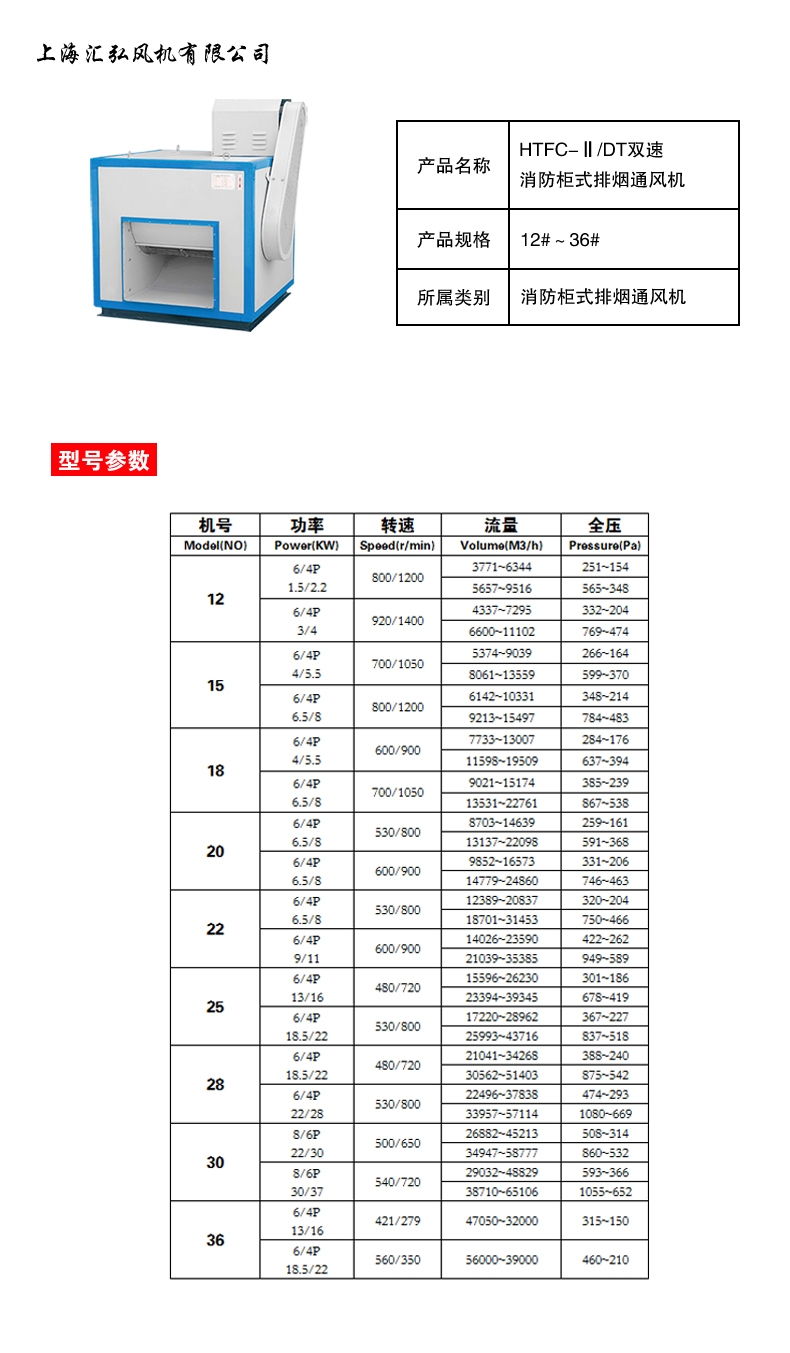 • 规格:HTFC系列消防柜式排烟风机