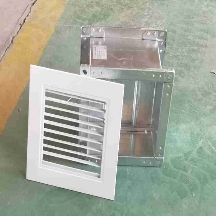 防火风口用于通风空调系统的末端,其动作温度为70℃。火灾时需在送排风口隔断火源。 防火风口若与风机联动的应选用带双微动开关装置。手动旋转调节杆时,可在0-90度范围内无级调节阀门的开度,当气流温度至70度时,阀门关闭,复位时,先拆下风口,调换新的易熔环,然后调节阀门开度,装上风口。