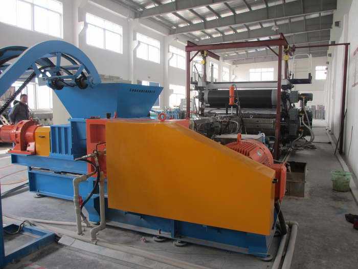 POE片材挤出机规格?POE片材生产线品牌 经加热,将粒料、粉料、破碎料或回头料混合,排气,然后在压力下从狭缝模中挤出。根据塑料类型和材料的厚度,热的挤出物被牵出和定型,或挤到带冷却的同步转动的牵引辊上(辊冷却工艺)。挤出物通过一个冷却段,然后裁边、卷取。片材按规格切割。