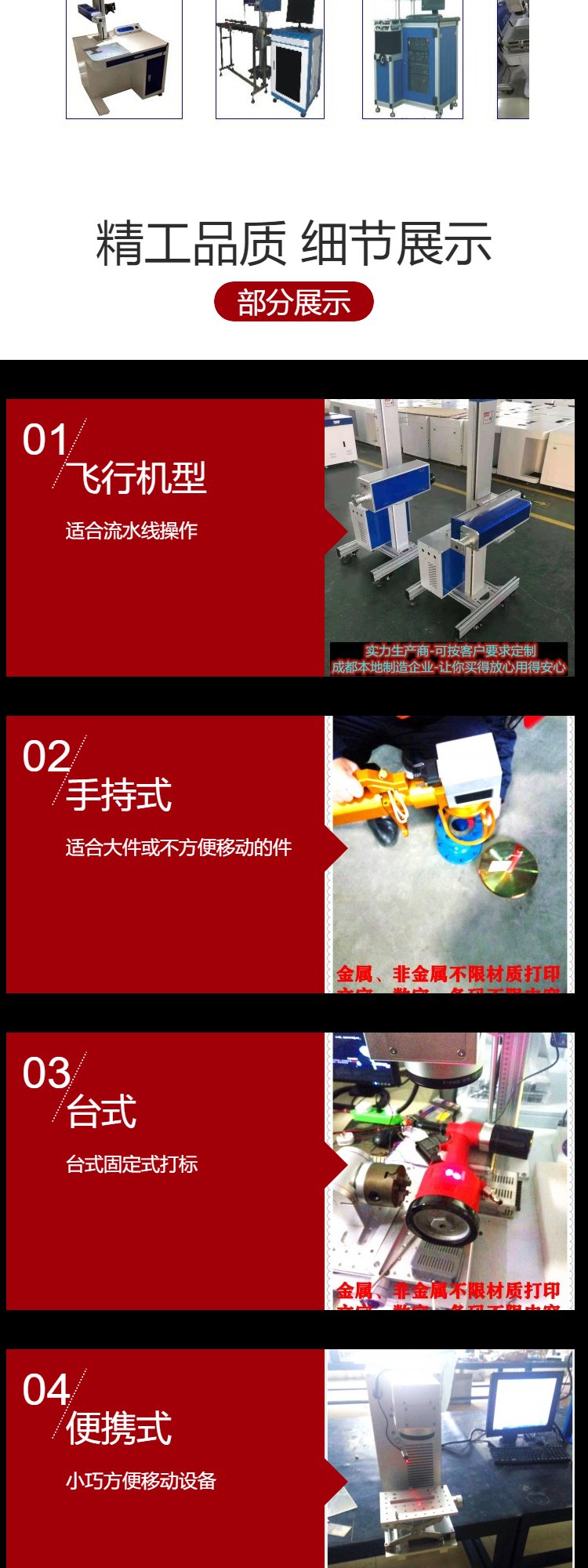 成都激光打标机,视觉智能定位激光打标机,定制激光打标机,?工业打码机 光刻机金属非金属表面刻字 二维码 流水号 飞龙达制造生产,本产品是光纤激光打标机标配,如有特殊要求请联系厂家,深雕测试10-70丝,欢迎测样,咨询电话:18328625869徐经理可供应20W.30W.50W等功率激光器,可开发票,免费试机试样,请与我公司联系。详情可致电:028-87533230?18328625869?15308214917