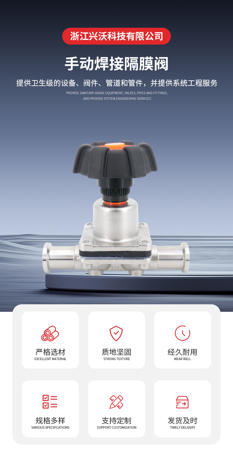 兴沃 不锈钢 卫生级手动焊接快装隔膜阀膜片 EPDM/PTFEF制药 公称直径 | 1.905cm | ||