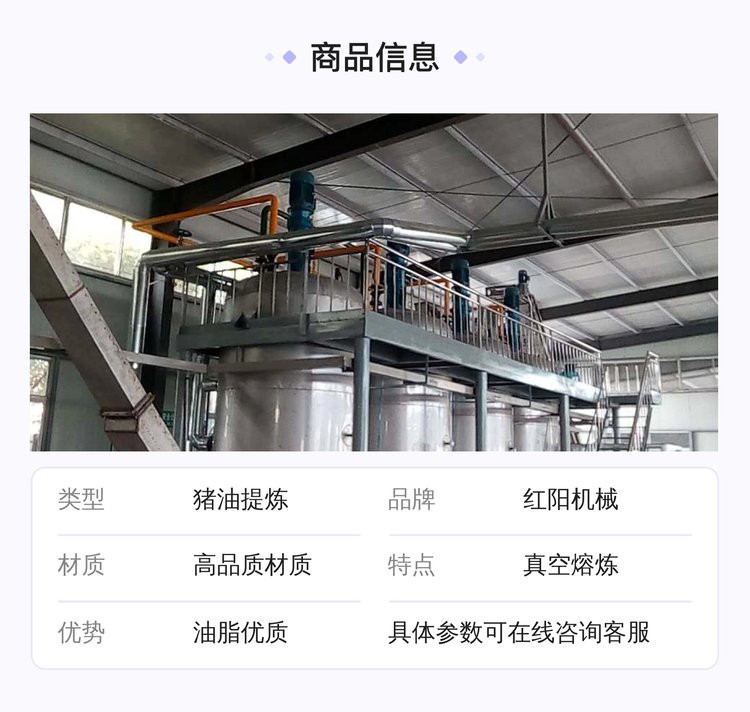 红阳机械猪油提炼设备连续生产品质保证。专利技术